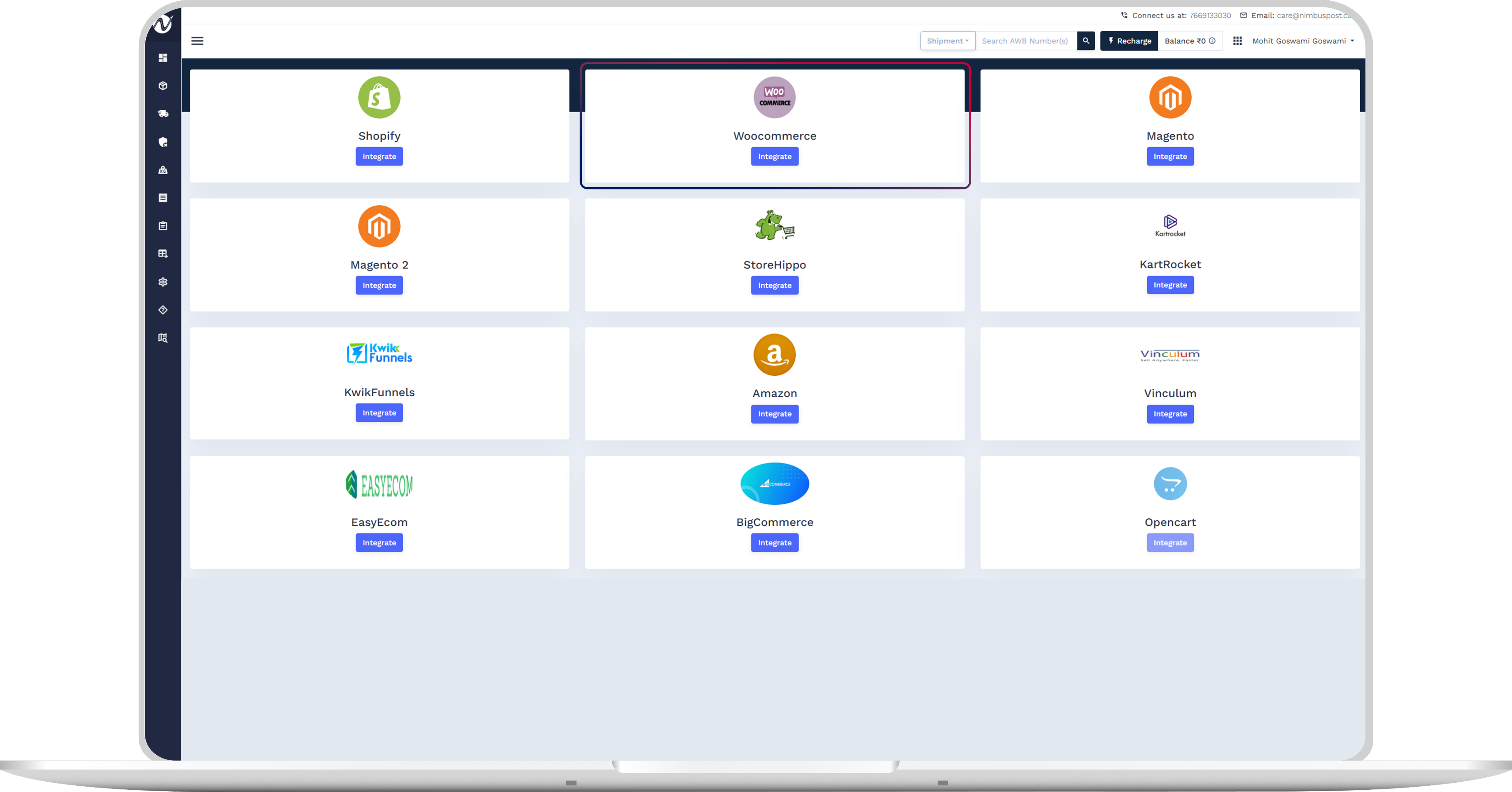 Select WooCommerce and click Integrate.