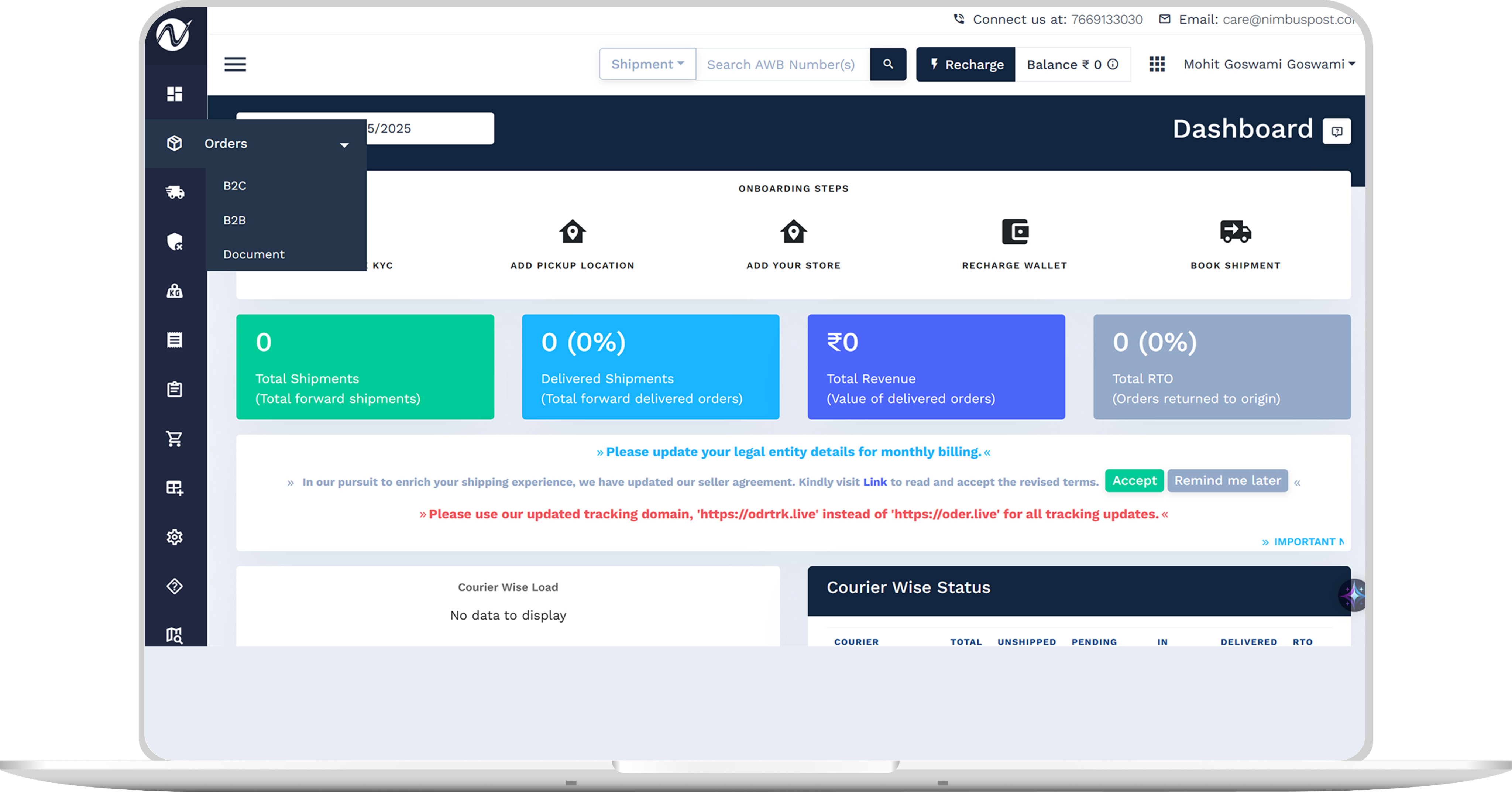 Log into your NimbusPost account.